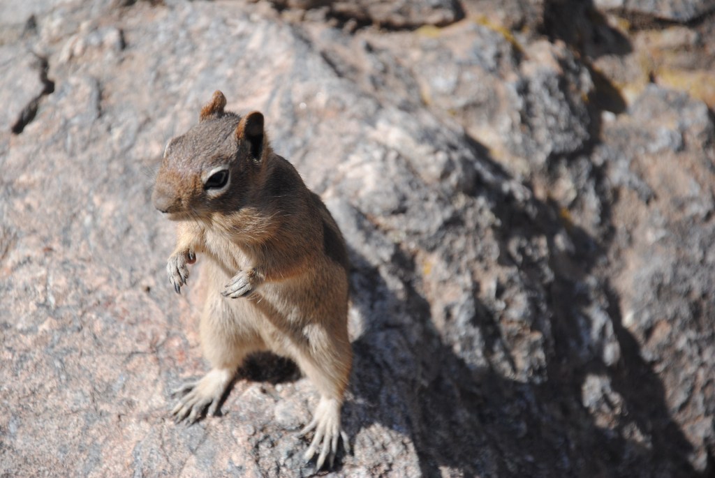 Nous reprenons la route. Au milieu des pins, quelques touches impressionnistes, rousses et or. Les trembles, ou aspens dans la langue de Thoreau, sont autant de tâches miraculeuses sur la superbe toile verte et grise des Rocheuses. Nous garons la voiture et nous engageons sur le Bear Lake trailhead, balade de quelques kilomètres qui nous mènera jusqu’à Emerald Lake. Dans les arbres, je retrouve les steller jays aperçus dans le Canyon du Cuivre. Des dizaines de tamias gambadent dans la forêts, quémandant pain et graines aux randonneurs.