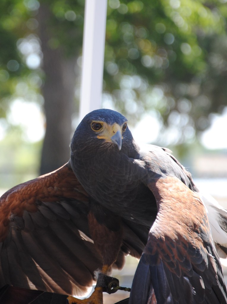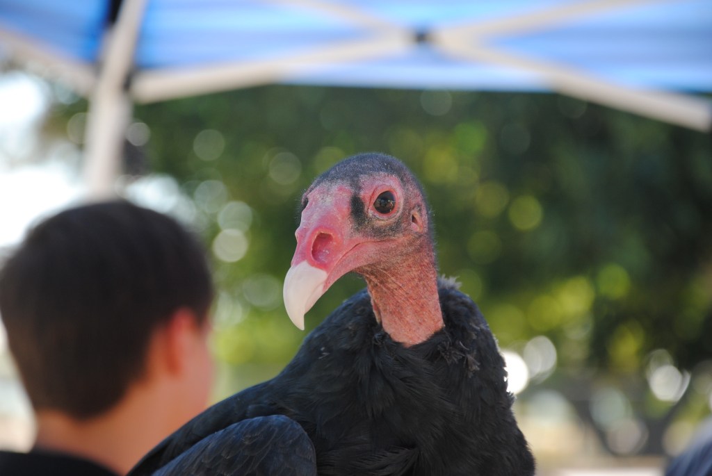 Avant de repartir vers Longmont, nous passons au stand aviaire, où paradent un charmant vautour et un joli faucon.